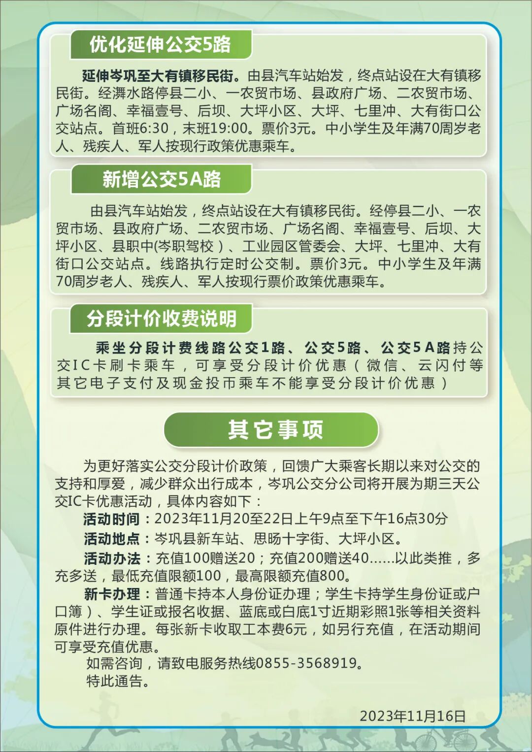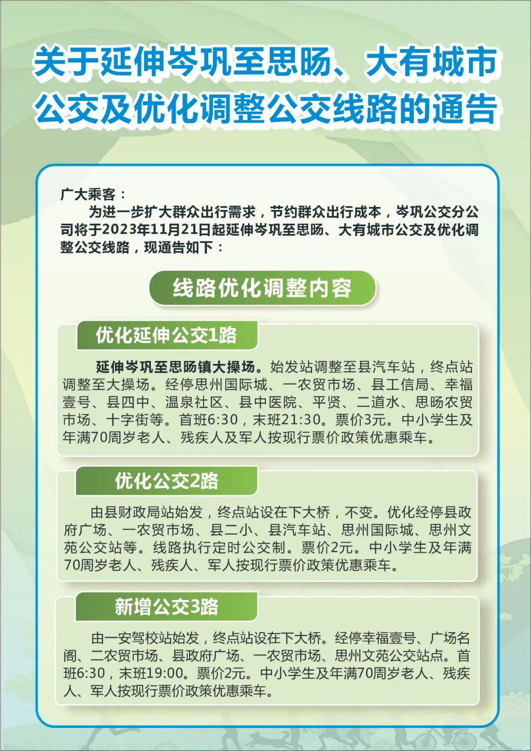[【微信新闻】] 关于延伸岑巩至思肠、大有城市公交及优化调整公交线路的通告