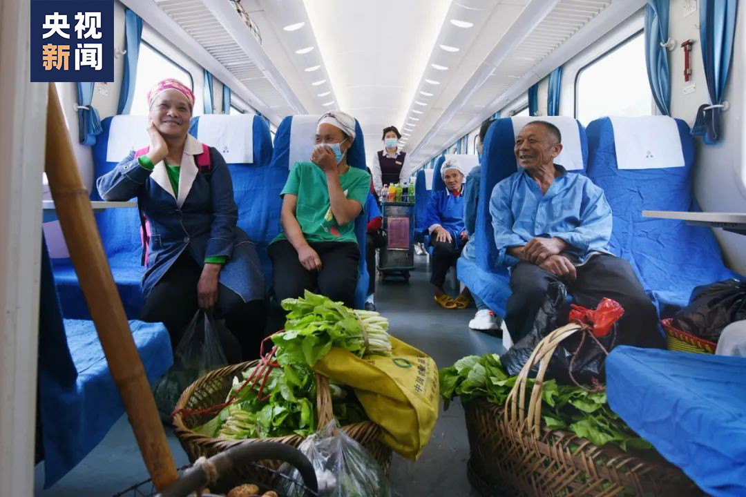 “村火车”就是5640/39 次绿皮火车,这趟火车于1997 年开行,至今已有27年,凯里境内的六个鸡、桐木寨、加劳等沿线村寨的群众搭乘这列慢火车,把深山里的鸡鸭鱼、瓜果蔬菜、土特产品等搬上了绿皮火车,运到城里售卖,列车上鲜鲜的蔬菜味、满满的生活味,浓浓的人情味,也成为了一道独特而靓丽的“风景线”,这趟“生活慢车”变成了苗乡侗寨的“致富快车”,跑出了乡村振兴的加速度,是“人民铁路为人民”的生动写照,被沿线群众爱称为惠民的“村火车”。