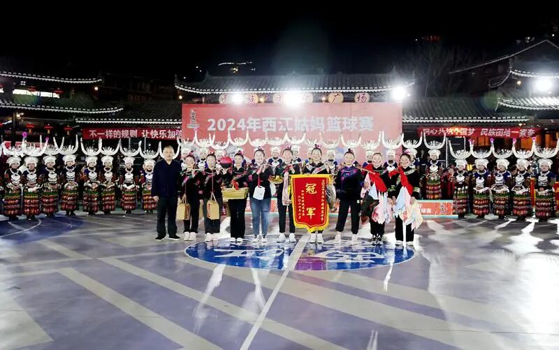 " 姑妈篮球比赛,热辣滚烫!"" 我们要的就是这种快乐!"" 没有规则,让快乐倍增!"" 赢球得酒喝,输球就把土鸡土鸭挑回家 ……"2 月 18 日,在贵州省雷山县西江千户苗寨的西江姑妈篮球赛决赛现场,人头攒动、熙熙攘攘,呐喊声、敲鼓声、敲盆声,一浪高过一浪。