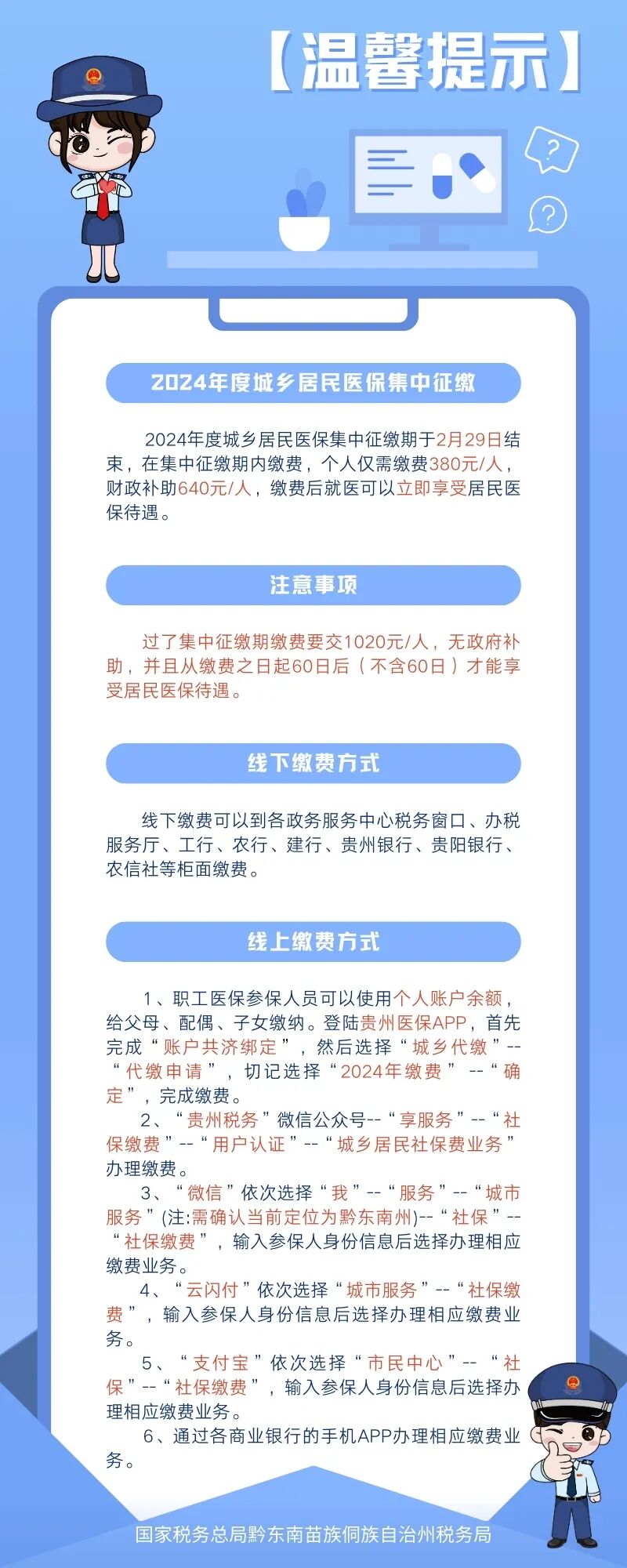 [【微信新闻】] 温馨提示 | 黔东南州2024年城乡居民医保费集中征缴期进入倒计时! |