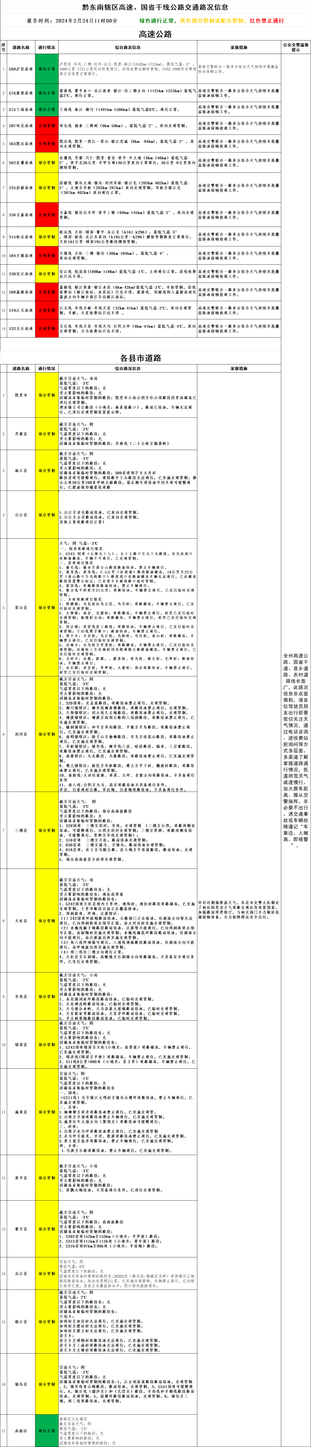 [【微信新闻】] 黔东南辖区高速、国省干线公路交通路况信息