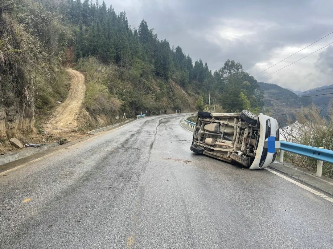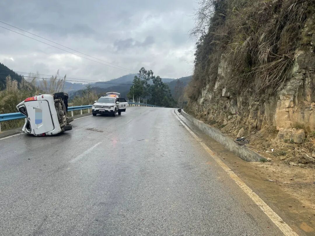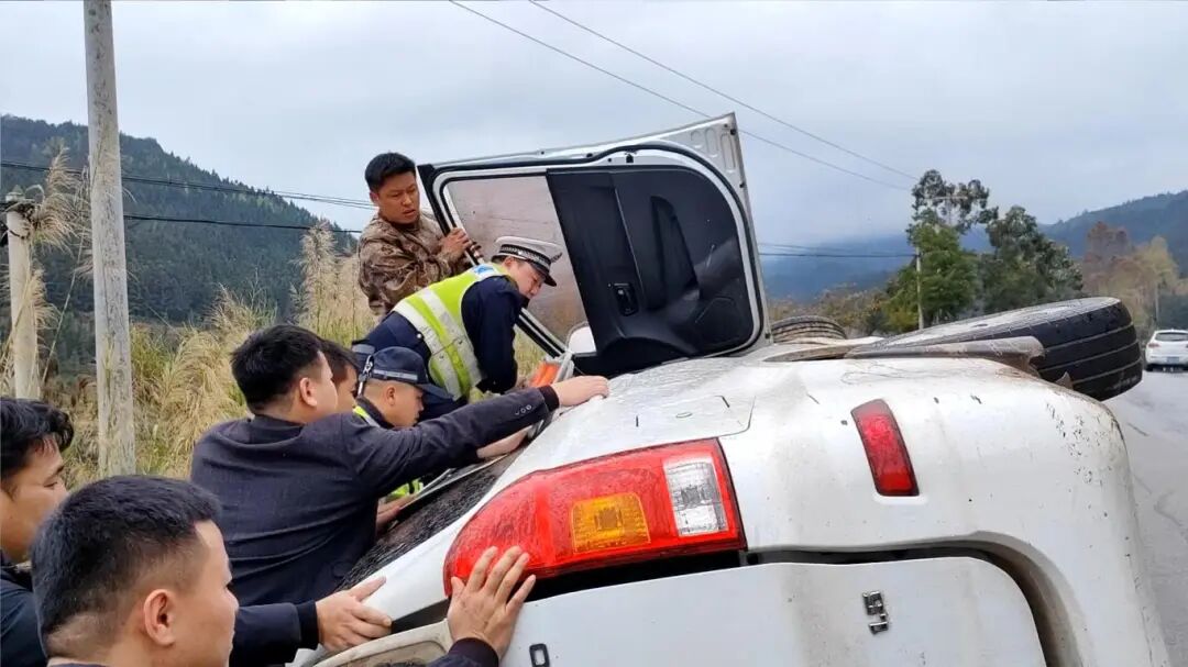 2024年3月15日13时许,从江县公安局交警大队四中队民警接到群众报警称:从江县巨洞村路段发生一起交通事故,有一辆小车侧翻,驾驶人被困车内。接警后,民警立即赶往现场。