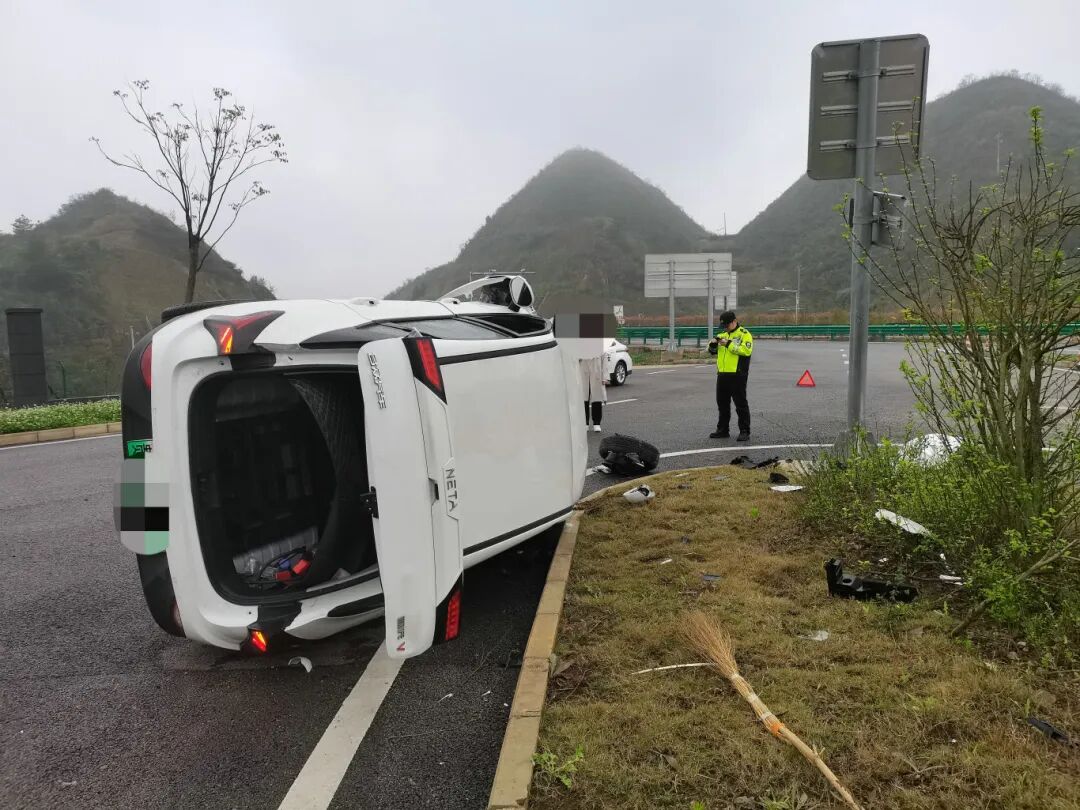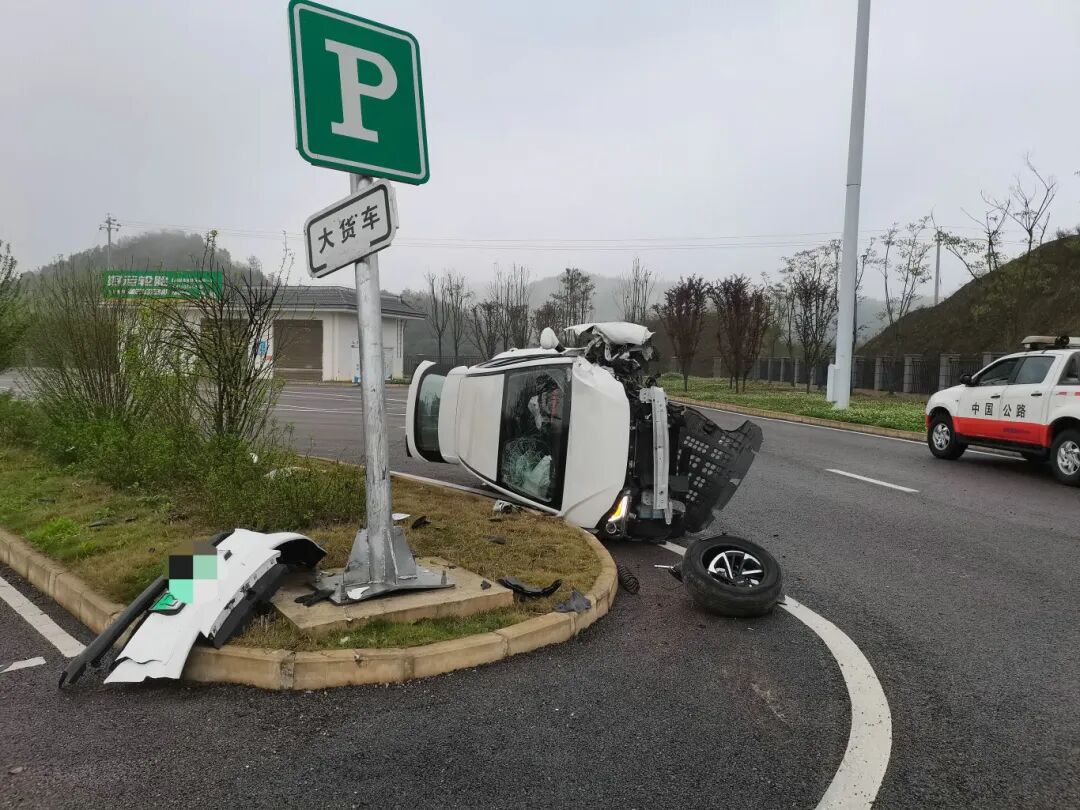 [【微信新闻】] 一小车进服务区转弯未减速致使车辆侧翻!事发黔东南 |