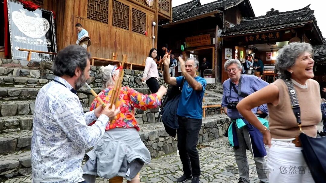 [size=14.6667px]  芦笙场上,精彩的表演则让来自法国、加拿大、意大利等国家的入境游客深受感染,纷纷在场边手舞足蹈的学起来。最后的民族团结舞更点燃了现场气氛,来自海内外五湖四海的游客们聚集在一起,大家围成圈、牵着手,共同跳起苗族芦笙舞,浓厚的民族文化和欢乐祥和的氛围得到了外国友人的一致好评。