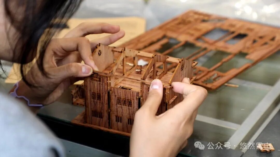 [size=14.6667px]  “这个苗族吊脚楼模型从我一开始拼的时候,感觉很难,通过伙伴们的合作就拼得越来越快,我感到了很多合作的力量。我觉得这里很好,大山、大树、流水,就很亲近自然。”