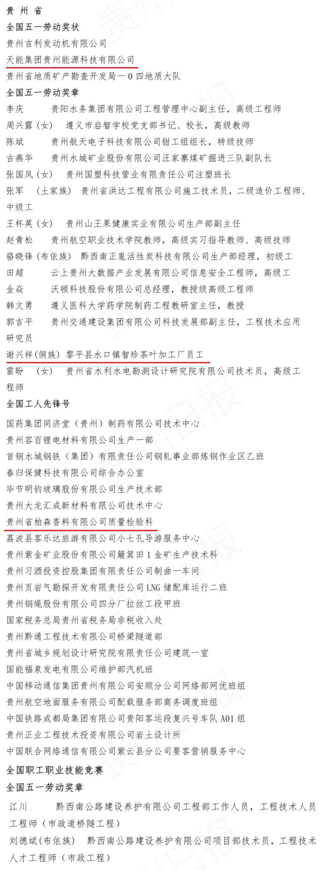 [【微信新闻】] 2024 年全国五一劳动奖和全国工人先锋号名单揭晓,黔东南这些集体和个人光荣上榜! |