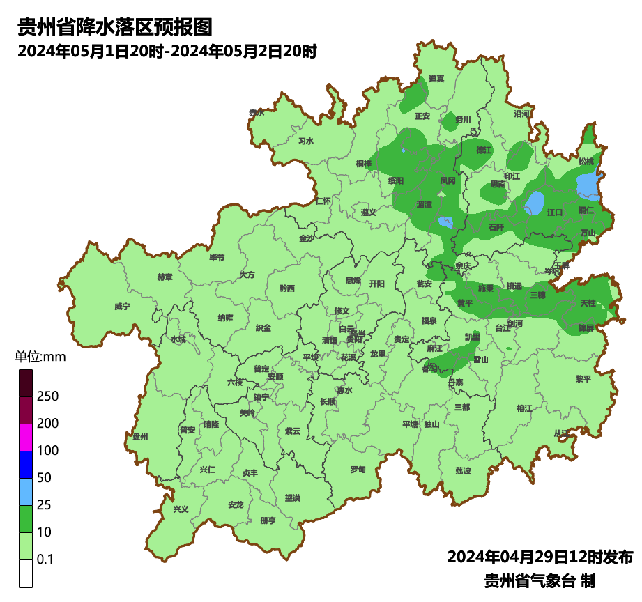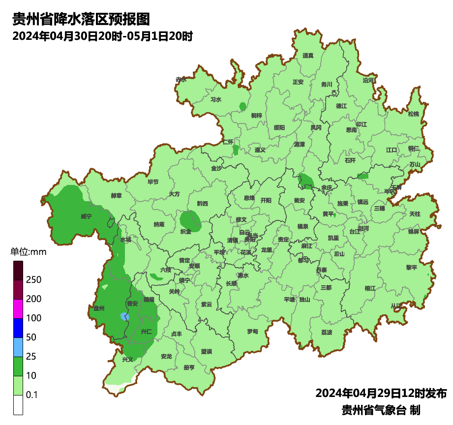 雷山县气象台2024年4月30日8时发布早间天气预报: 一、天气实况:据气象监测,29日8时至30日8时全县多云间晴转雷阵雨,共出现3站大暴雨(开屯132.6、永乐124.9、方祥103.9)、22站暴雨,丹江44.1,全县普降暴雨,方祥、永乐出现大暴雨。望丰、永乐炮站共开展防雹作业3次,防区内降小冰雹。30日8时气温15.4℃(西江)~17.8℃(永乐);丹江:阴天,气温17.7℃,东北风2.5m/s,相对湿度90%。 二、未来24小时天气预报:预计30日全县阴天为主,夜间阴天有分散阵雨或雷雨,最高气温20~23℃。丹江:阴天,夜间阴天有分散阵雨或雷雨,气温17~22℃。