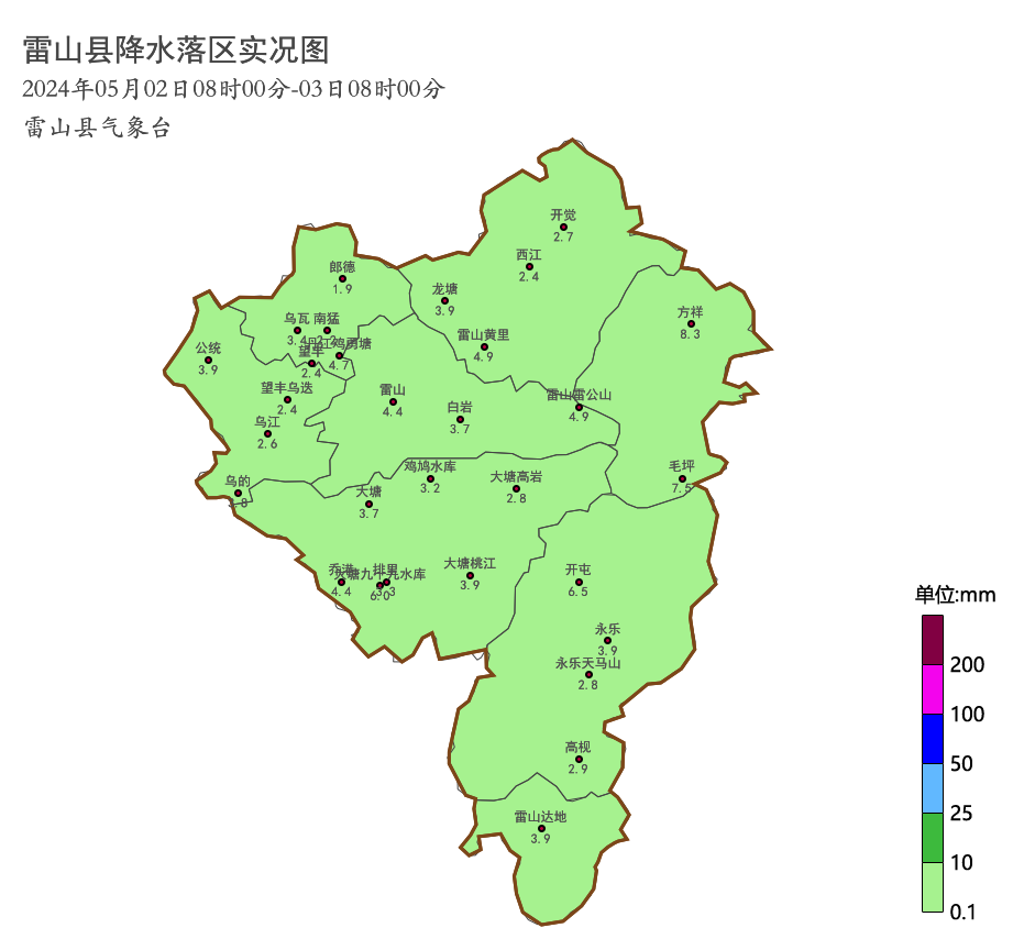 天气预报雷山县气象台2024年5月3日8时发布早间天气预报: 一、天气实况:据气象监测,2日8时至3日8时全县阴天有阵雨,共出现30站小雨。3日8时气温12.2℃(西江)~14.4℃(永乐);丹江:阴天有分散阵雨,气温13.8℃,偏北风1.0m/s,相对湿度96%。 二、未来24小时天气预报:预计3日上午全县分散阵雨转阴天间短时多云,部分路段有雨雾;下午到夜间自北向南转雷阵雨,局地伴有短时强降水等强对流天气。最高气温18~20℃,最低气温12~14℃。丹江:白天分散阵雨转阴天,傍晚到夜间阴天有中到大雨,气温13~19℃。 来源:雷山县气象台