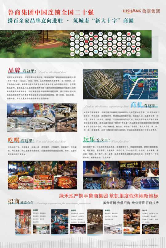 绿禾地产携手鲁商集团 筑凯里度假休闲新地标 黄金旺铺 火爆招商 专业运营 开店扶持 鲁商银座·龙泉云鼎天街正在构建 城市微度假轻文旅 品质生活乐园 更多精彩,我们未来见! 招商电话:0855-2218899