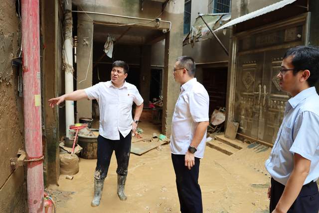 灾情就是命令,时间就是生命。灾情发生后,邮储银行黔东南州分行党委高度重视,积极响应当地党委政府和监管机构的号召,迅速启动应急预案,成立由行领导牵头的应急工作领导小组,由行领导带队第一时间赶赴榕江县现场指挥抢险救灾和金融服务保障工作,同时对辖内支行网点及受灾的员工进行慰问。在确保人员财产安全的前提下,该行与当地政府应急指挥部门建立紧密联动机制,实行24小时值班制度,实时关注灾情发展动态。  (图为邮储银行黔东南州分行行领导赴榕江县支行指导灾后重建和金融服务保障工作)