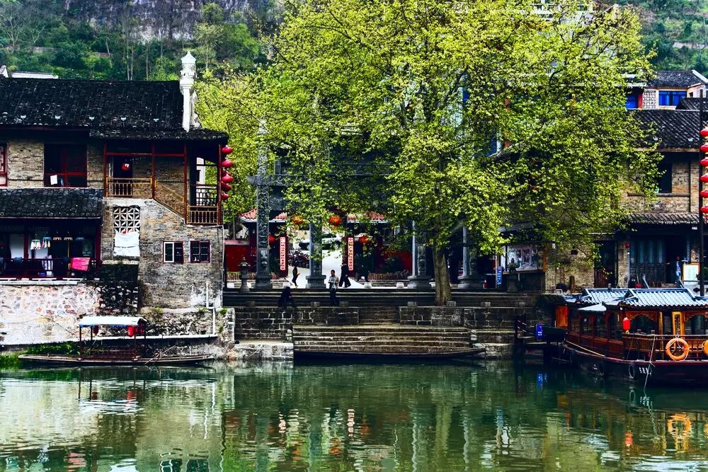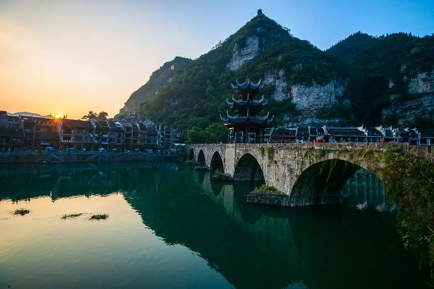 镇远古镇是贵州省黔东南苗族侗族自治州镇远县名镇,位于舞阳河畔,四周皆山。河水蜿蜒,以“S”形穿城而过,北岸为旧府城,南岸为旧卫城,远观颇似太极图。两城池皆为明代所建,现尚存部分城墙和城门。镇远古镇交通方便区位优越,湘黔铁路、株六复线、320国道、沪昆高速公路穿境而过,距铜仁、湖南芷江和贵飞机场分别为90公里、170公里、270公里。县境东界湖南新晃,南临三穗、剑河,西毗施秉,北接岑巩和铜仁地区的石阡,素有"滇楚锁钥、黔东门户"之称。镇远城东的青龙洞,是一组规模极其宏大的明清宗教建筑群,其间既有佛教寺庙,又有道教宫观和儒家祠庙,三教合一,蔚为壮观。 史书记载,镇远古称“竖眼大田溪洞”,属“鬼方”。从夏到商, 世居着荆、梁二州的西南,称“荆蛮”。追本溯源,古代的镇远,地处历史上“五溪蛮”和“百越人”聚居的结合部。 宋宝佑六年(公元1258年)十一月筑黄平城,赐名镇远州,为镇远之名的开始。 德祐元年(公元1275年)置镇远沿边溪洞招讨使司。元至元二十年(公元1283年)改沿边溪洞招讨司为总管府,至正二年(公元1365年)为府。 明洪武四年(公元1371年)改为州,永乐十一年(公元1412年)为镇远府,正统三年(1438年)五月革镇远州,弘治十一年(公元1446年)置镇远县,隶镇远府,万历二十九年(公元1601年)改镇远卫。 清康熙二十二年(公元1683年)将卫并入县。 宣统元年(公元1909年)省县,以其地为府直辖,1913年恢复置县。镇远素有“滇楚锁钥,黔东门户”之称,史书云:欲据滇楚,必占镇远;欲通云贵,先守镇远。因地处交通要道,地势险要,据之非常重要,故名。据《贵州通志》392页载:“宋理宗宝祜六年(1258年),十一月。宋诏:新筑黄平,赐名镇远州,吕逢年晋一秩。”镇远之名始于此。