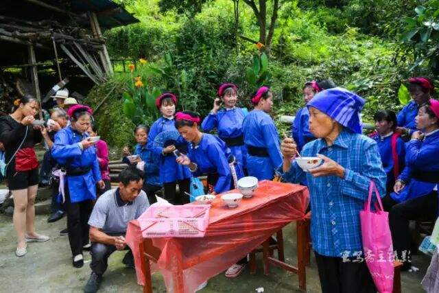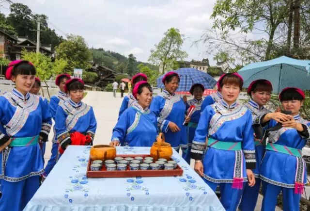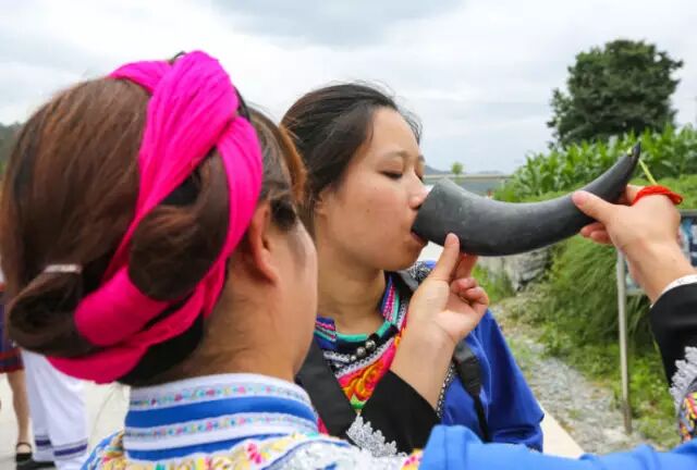 【侗家拦门酒】侗家人在进入寨子的在门楼边或者路上设置“路障”,挡住客人,寨子里的大姑娘小媳妇甚至中老年妇女都端着酒来向客人敬酒。饮酒对歌,你唱我答,其歌词诙谐逗趣,令人捧腹。唱好了喝好了,再撤除障碍物,恭迎客人进门。当然,像我们这些无法对歌的人既不会唱,又听不懂,只好老老实实的一饮而尽了。当然,需要特别说明的是,面对侗家人敬酒过来,是不能用手接的,只能把嘴凑上去让人家喂。如果用手接了,那就是对人家的不尊重,那就是“敬酒不吃吃罚酒”了,就得将对方敬过来的酒全喝干了。酒杯装的酒还好办,最怕的就是用牛角装的,一牛角就是一斤酒呢,全干下去,那你那天就啥也不能干了,呵呵:)