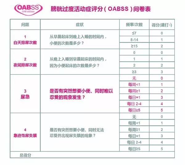 赶紧行动起来,从源头上找到尿急尿频(OAB)的元凶,[url=]戳我[/url]做个OABSS筛查吧。早发现,早解决!