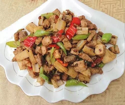 鸡腿,花生,葱,姜,花椒,干辣椒,八角 桂皮,香叶,辣椒面,白芝麻,麻椒油,糖 做法 1、洗净鸡腿入锅,加入料酒适量,凉水淹过后,大火烧开,出净血沫。 2、冷水冲洗干净。 3、凉水入锅,葱姜适量,大火烧开,煮沸捞出(滚水不要倒)。 4、再次冷水冲洗。 5、放入沸水中,大火烧开,煮沸,小火加盖烧5分钟,熄火闷10分钟。 6、捞出鸡腿入冰块中,冰镇20分钟(冰块尽量全部覆盖)。 7、冷油入花生米煎炸,搓去外皮切碎,备用。 8、锅中油小火,入花椒5g、干辣椒10粒、八角2颗、桂皮一段、香叶2片,煸出香味后丢掉。 9、碗中入辣椒面与白芝麻适量,倒入上述香料油即为油辣子。 10、辅料包括:油辣子、调味汁、麻椒油、糖等;蒜姜小葱压成泥或切碎;碎花生米。 11、将上述调料混合,淋在切成条块的鸡肉上即可。 6剁椒带鱼 材料 带鱼,料酒,胡椒粉,剁椒酱,蒸鱼豉油 做法 1、带鱼解冻冲洗干净,加入料酒和白胡椒粉腌制1小时左右。 2、腌好后,放入盘里,码放整齐,表层加剁椒酱。 3、放入蒸锅里,蒸8分钟左右即可出锅。 4、出锅后,倒去盘里的水,加入蒸鱼豉油,拌匀即可。 7毛血旺 材料 鸭血,黄豆芽,莴笋,黑鱼片,黄鳝,火腿 葱,姜片,大蒜,干辣椒,花椒,料酒,鸡精 重庆火锅底料,香油 做法 1、锅中烧开水加入少许盐,放入去皮切块的莴笋焯烫一下捞出过凉备用。 2、再把黄豆芽放入焯烫一下过凉备用。 3、再放入切片的鸭血煮上2分钟捞出。 4、水煮开关火放入黄鳝片焯烫捞出过凉备用。 5、炒锅倒油放入火锅底料,小火炒至融化出红油。 6、放入葱姜蒜开大火爆香,加入适量的清水,加入料酒。 7、再把煮过的鸭血放入,加入盐煮上5分钟。 8、再把黄鳝片放入继续5分钟。 9、加入黄豆芽继续,加入少许糖。 10、把切好的火腿片放入。 11、再把黑鱼片放入,煮至鱼片变白紧缩。 12、加入一勺鸡精翻炒均匀关火。 13、把焯烫过的莴笋放入一个小锅中。 14、再把煮好的食材倒入莴笋上面。 15、炒锅倒入香油小火炸香干辣椒和花椒。 16、再把油浇在毛血旺锅中即好。 8剁椒鱼头 材料 鱼头,葱,姜,蒜,剁椒,盐,胡椒粉,鸡精 做法 1、鱼头加盐搓洗干净,冲掉盐水,撒胡椒粉一茶匙,食用油半汤匙,盐半茶匙,鸡精半茶匙,搓揉均匀,腌渍十分钟。 2、葱姜蒜垫底。 3、铺上剁椒蒸八分钟虚火蒸两分钟。 4、撒上葱姜蒜末。 5、油烧热,冒青烟的时候离火,数三个数,浇在鱼上即可。 6、剩下的汤汁用来拌面条特别好吃。 9农家小炒肉 材料 五花肉,红尖椒,青尖椒,姜,蒜头,大蒜 生抽,老抽,料酒,盐,鸡精 做法 1、红青尖椒切圈,五花肉切片,姜、蒜头、大蒜切好备用。 2、锅中少许油放入肉片煸炒,至肥脂呈透明色 边缘微微焦黄,不要把肉炒得太过火,免得口感发硬。 3、倒入生抽、老抽和料酒,翻炒。 4、将肉铲到一边,爆香姜、蒜头和大蒜白色部份。 5、最后放入红、青尖椒翻炒,盐和鸡精调味,即可。 10酸辣炒蟹 材料 毛蟹2只,酸泡辣椒3个,蒜瓣1个,生姜1大块 香葱1根,盐2克,生抽5克,蚝油5克,陈醋3克 白糖3克,白胡椒粉2克,干淀粉适量,油30克 做法 1、毛蟹洗净,加入盐、白胡椒粉腌制5分钟。 2、蒜瓣、姜末、香葱、酸泡辣椒剁碎,制成酱料,生抽、蚝油、陈醋制成酱汁。 3、把腌制好的毛蟹表面均匀沾上干淀粉。 4、锅里倒入油,烧热,把沾了干粉的毛蟹放到锅里炸至变色,取出备用。 5、锅里留油,下酱料炒出香气。 6、毛蟹下到锅里与酱料一起炒匀。 7、淋上调好的酱汁,快速翻炒入味即可。