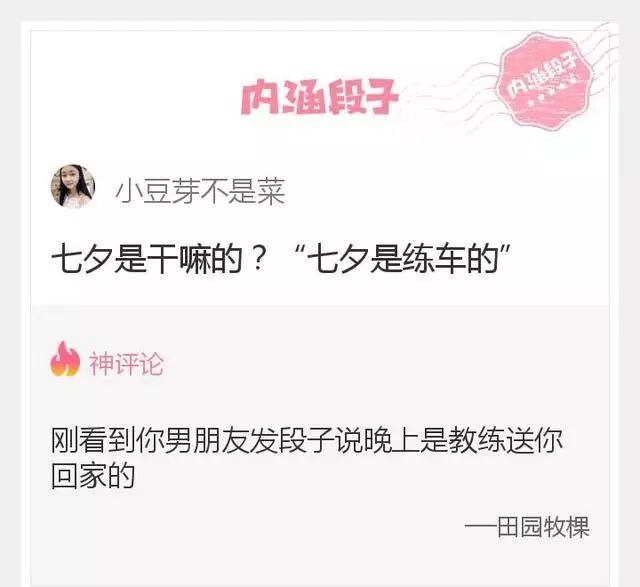 内涵神评论:七夕是干嘛的?七夕是练车的。