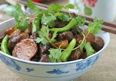 蚝油甜豆炒牛肉 主料:牛柳200克,甜豆250克 辅料:生抽、干淀粉、料酒、蚝油、葱、盐、油各适量。 做法: 1)将甜豆择去老筋洗净,放入滚水中汆烫断生,捞出后放入冷水中浸泡,待完全冷却后再捞出沥干水分。 2)牛柳切片,用生抽、干淀粉和料酒抓拌均匀,腌制10分钟。大葱洗净后切片。 3)炒锅中倒入油,待油7成热时,放入牛肉片滑炒至8成熟,之后放入甜豆,调入蚝油和盐,翻炒至熟即可。 特点:此菜色彩翠绿,清脆鲜香。 温馨提示:像甜豆,荷兰豆,西兰花这样的蔬菜,汆烫后尽量都放入冷水中浸泡,不要省略这一步,否则就无法保持蔬菜碧绿的颜色。