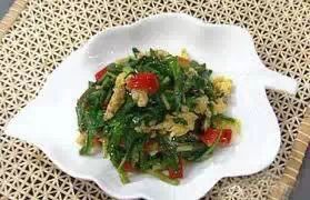 酸辣炒韭菜 主料:韭菜 辅料:红椒、鸡蛋 调料:盐、料酒、醋、白糖、花椒粉、辣椒面、水淀粉 烹制方法: 1、将韭菜洗净切成段,红椒切成小块,鸡蛋加盐、料酒、水打散备用; 2、坐锅点火倒油,下鸡蛋炒熟取出,取一小碗加醋、盐、白糖、花椒粉、水淀粉搅匀,锅中加少许油,放入辣椒面炸香后倒入韭菜快速翻炒,加入红椒、鸡蛋,倒入调好的汁,炒匀出锅即可。 特点:酸辣鲜香,口感爽滑。