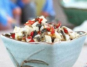 原料:雪菜(雪里蕻)一袋200克 冬笋一个 大葱数片 剁椒2大勺 盐1茶匙(5克) 糖1茶匙(5克) 鸡精少许 香油少许 做法: 1)冬笋洗净切成小丁,放入沸水中焯2分钟后,捞出沥干水份备用。 2)大火加热炒锅中的油,待油6成热的时候调成中火,放入大葱片,爆香后倒入冬笋丁煸炒2分钟,再加入剁椒和雪菜。 3)翻炒几下后,调入盐和糖,继续炒2分钟关火,撒少许鸡精和香油即可。 超级啰嗦: 1)各地售卖的雪菜咸度不一,记得酌量加盐哦! 2)炒笋时,不要大火爆炒,用中火可以使笋保持白嫩的颜色。