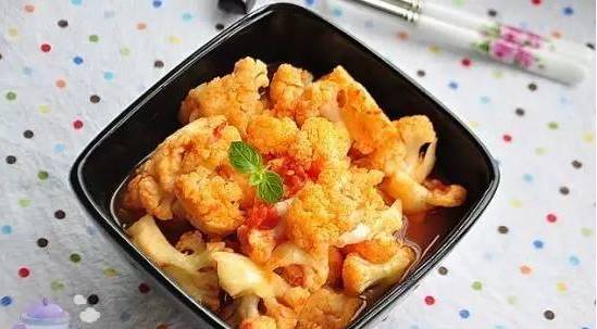做法: 1、菜花撕成小朵,开水焯几分钟备用; 2、西红柿切小块备用; 3、锅热后倒入油,放入葱花、煸出葱香,放入西红柿,炒至变软,倒入适量的酱油,炒至番茄酱糊状; 4、放入焯烫过的菜花,翻炒两分钟即可。