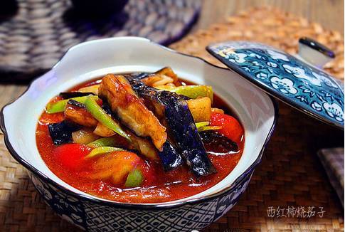 功效: 这道菜能融合番茄的酸和茄子的嫩,将二者营养合二为一,既除去了红烧茄子的油腻,又中和了番茄的酸气,味美色香。